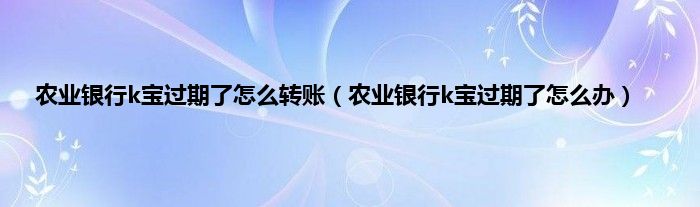 大家好,小常来为大家解答以上问题。农业银行k宝过期了怎么转账,农业银行k宝过期了怎么办很多人还不知道,现在让我们一起来看看吧!