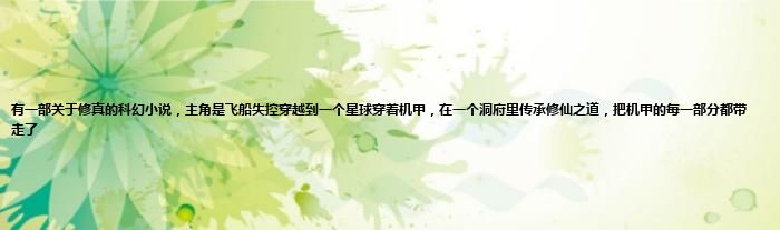 大家好,小常来为大家解答以上问题。有一部关于修真的科幻小说,主角是飞船失控穿越到一个星球穿着机甲,在一个洞府里传承修仙之道,把机甲的每一部分都带走了很多人还不知道,现在让我们一起来看看吧!