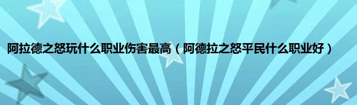 大家好,小常来为大家解答以上问题。阿拉德之怒玩什么职业伤害最高,阿德拉之怒平民什么职业好很多人还不知道,现在让我们一起来看看吧!