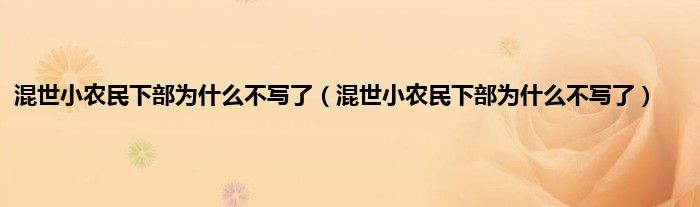 大家好,小常来为大家解答以上问题。混世小农民下部为什么不写了,混世小农民下部为什么不写了很多人还不知道,现在让我们一起来看看吧!