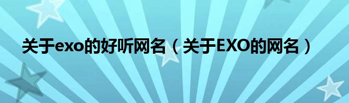 大家好,小常来为大家解答以上问题。关于exo的好听网名,关于EXO的网名很多人还不知道,现在让我们一起来看看吧!