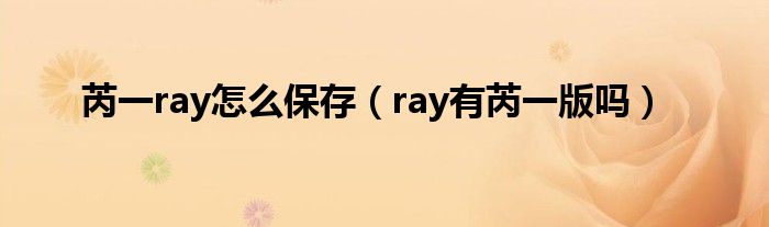 大家好,小科来为大家解答以上问题。芮一ray怎么保存,ray有芮一版吗很多人还不知道,现在让我们一起来看看吧!