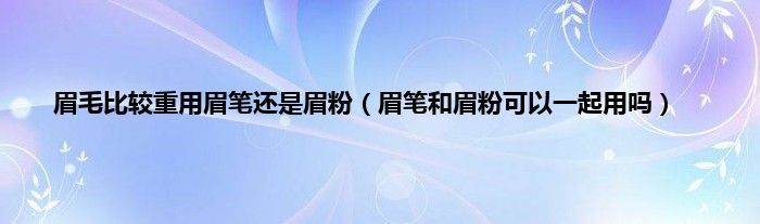 大家好,小科来为大家解答以上问题。眉毛比较重用眉笔还是眉粉,眉笔和眉粉可以一起用吗很多人还不知道,现在让我们一起来看看吧!