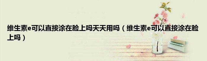 1、 维生素e可以直接涂在脸上。维生素e是脂溶性维生素,涂抹在脸上不会对皮肤造成伤害,反而还能帮助护肤。
