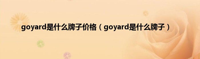大家好,小科来为大家解答以上问题。goyard是什么牌子价格,goyard是什么牌子很多人还不知道,现在让我们一起来看看吧!