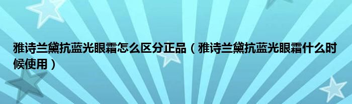 大家好,小科来为大家解答以上问题。雅诗兰黛抗蓝光眼霜怎么区分正品,雅诗兰黛抗蓝光眼霜什么时候使用很多人还不知道,现在让我们一起来看看吧!