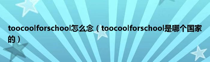 大家好,小科来为大家解答以上问题。toocoolforschool怎么念,toocoolforschool是哪个国家的很多人还不知道,现在让我们一起来看看吧!