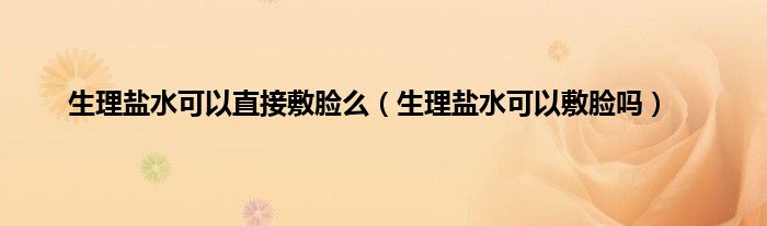 大家好,小科来为大家解答以上问题。生理盐水可以直接敷脸么,生理盐水可以敷脸吗很多人还不知道,现在让我们一起来看看吧!