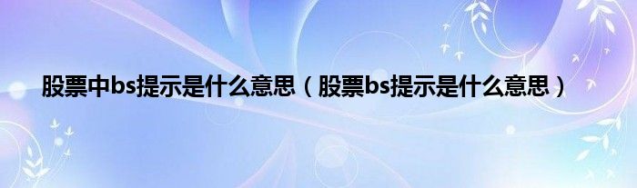 大家好,小常来为大家解答以上问题。股票中bs提示是什么意思,股票bs提示是什么意思很多人还不知道,现在让我们一起来看看吧!