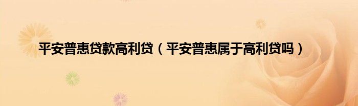 2、如果贷款利率超过月利率2%或者24%的年利率就涉嫌高利贷了,否则就是正常的平安普惠金融业务集群(以下简称“平安普惠”)为中国平安保险(集团)有限公司(以下简称“平安集团”)联营企业的下属业...。