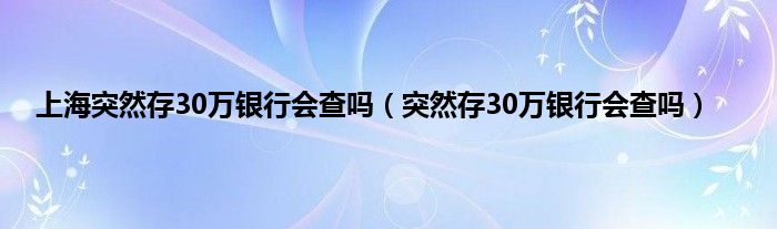 大家好,小常来为大家解答以上问题。上海突然存30万银行会查吗,突然存30万银行会查吗很多人还不知道,现在让我们一起来看看吧!