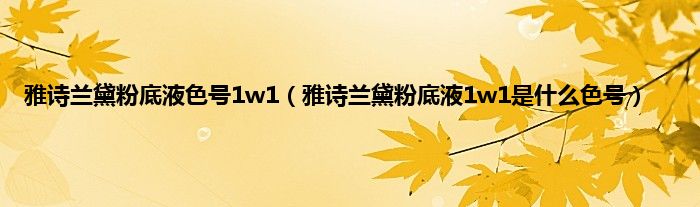 大家好,小科来为大家解答以上问题。雅诗兰黛粉底液色号1w1,雅诗兰黛粉底液1w1是什么色号很多人还不知道,现在让我们一起来看看吧!