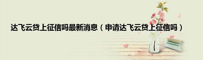 大家好,小常来为大家解答以上问题。达飞云贷上征信吗最新消息,申请达飞云贷上征信吗很多人还不知道,现在让我们一起来看看吧!