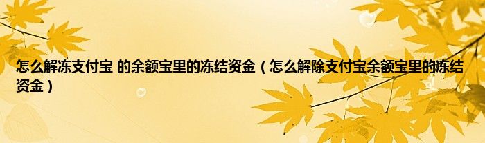 大家好,小常来为大家解答以上问题。怎么解冻支付宝 的余额宝里的冻结资金,怎么解除支付宝余额宝里的冻结资金很多人还不知道,现在让我们一起来看看吧!