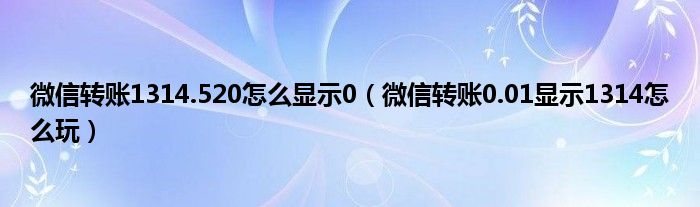 大家好,小常来为大家解答以上问题。微信转账1314.520怎么显示0,微信转账0.01显示1314怎么玩很多人还不知道,现在让我们一起来看看吧!