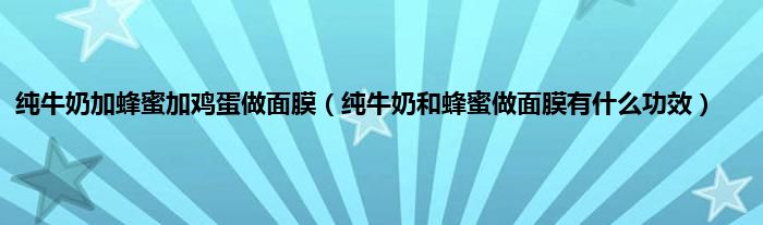 大家好,小科来为大家解答以上问题。纯牛奶加蜂蜜加鸡蛋做面膜,纯牛奶和蜂蜜做面膜有什么功效很多人还不知道,现在让我们一起来看看吧!