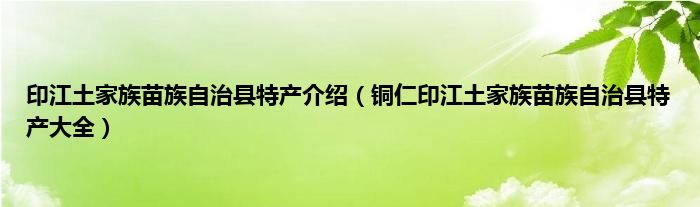 大家好,小常来为大家解答以上问题。印江土家族苗族自治县特产介绍,铜仁印江土家族苗族自治县特产大全很多人还不知道,现在让我们一起来看看吧!