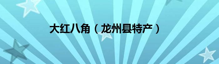 大红八角是龙州的主要特产,龙州县八角乡更因盛产八角而得名。龙州是大红八角的著名产区,人工栽培已有400多年的历史,年产八角500万公斤,龙州大红八角个大、色着好、香味浓郁,质量上乘,产品远销欧美和港澳台地区。