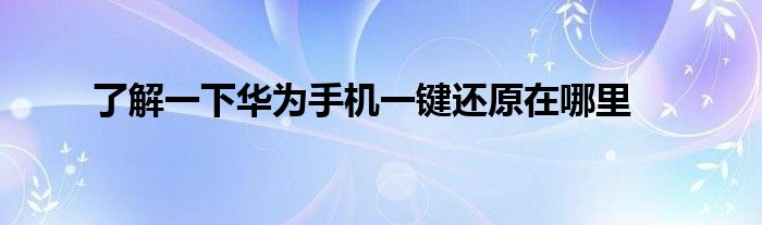 现在大家使用手机的频率越来越频繁,手机也为我们提供了许多的便利,今天小编也来说一下这个了解一下华为手机一键还原在哪里相关的文章,这个操作其实不复杂,接下来就给大家介绍一下了解一下华为手机一键还原在哪里,一起来看看吧: