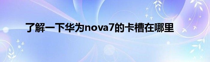 相信通过了解一下华为nova7的卡槽在哪里这篇文章能帮到你,在和好朋友分享的时候,也欢迎感兴趣小伙伴们一起来探讨。