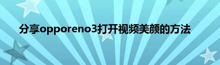 现在大家使用手机的频率越来越频繁,手机也为我们提供了许多的便利,今天小编也来说一下这个分享opporeno3打开视频美颜的方法相关的文章,这个操作其实不复杂,接下来就给大家介绍一下分享opporeno3打开视频美颜的方法,一起来看看吧: