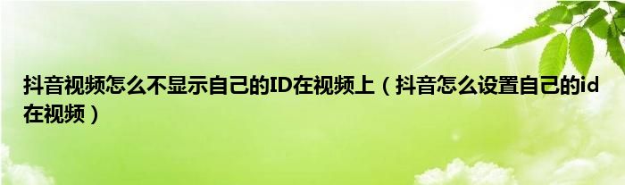 抖音视频怎么不显示自己的ID在视频上(抖音怎么设置自己的id在视频)