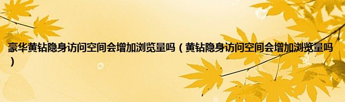 大家好,小常来为大家解答以上问题。豪华黄钻隐身访问空间会增加浏览量吗,黄钻隐身访问空间会增加浏览量吗很多人还不知道,现在让我们一起来看看吧!
