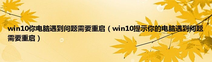 大家好,小常来为大家解答以上问题。win10你电脑遇到问题需要重启,win10提示你的电脑遇到问题需要重启很多人还不知道,现在让我们一起来看看吧!