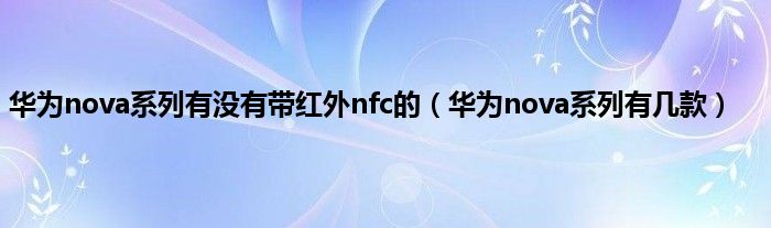 大家好,小常来为大家解答以上问题。华为nova系列有没有带红外nfc的,华为nova系列有几款很多人还不知道,现在让我们一起来看看吧!