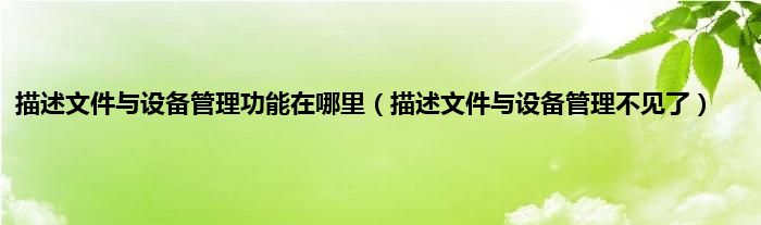 大家好,小常来为大家解答以上问题。描述文件与设备管理功能在哪里,描述文件与设备管理不见了很多人还不知道,现在让我们一起来看看吧!