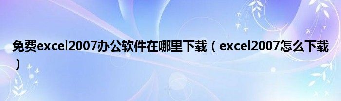 免费excel2007办公软件在哪里下载(excel2007怎么下载)
