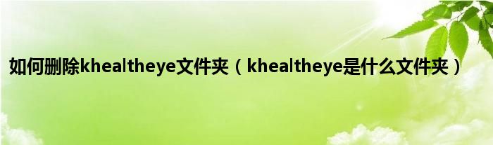 如何删除khealtheye文件夹(khealtheye是什么文件夹)