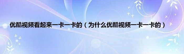 大家好,小常来为大家解答以上问题。优酷视频看起来一卡一卡的,为什么优酷视频一卡一卡的很多人还不知道,现在让我们一起来看看吧!