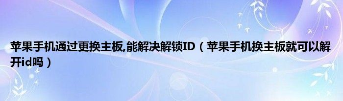 大家好,小常来为大家解答以上问题。苹果手机通过更换主板,能解决解锁ID,苹果手机换主板就可以解开id吗很多人还不知道,现在让我们一起来看看吧!