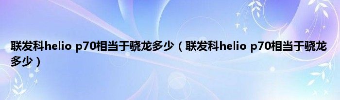 大家好,小常来为大家解答以上问题。联发科helio p70相当于骁龙多少,联发科helio p70相当于骁龙多少很多人还不知道,现在让我们一起来看看吧!