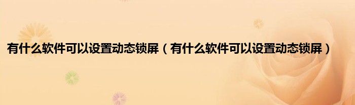 大家好,小常来为大家解答以上问题。有什么软件可以设置动态锁屏,有什么软件可以设置动态锁屏很多人还不知道,现在让我们一起来看看吧!