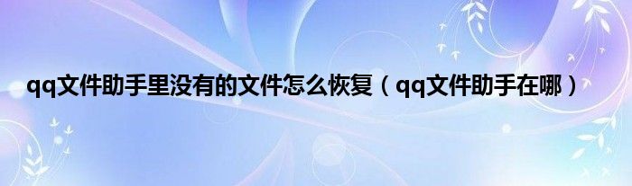 大家好,小常来为大家解答以上问题。qq文件助手里没有的文件怎么恢复,qq文件助手在哪很多人还不知道,现在让我们一起来看看吧!