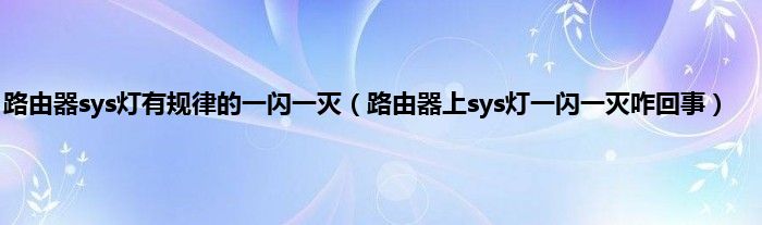 大家好,小常来为大家解答以上问题。路由器sys灯有规律的一闪一灭,路由器上sys灯一闪一灭咋回事很多人还不知道,现在让我们一起来看看吧!