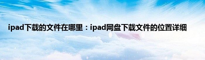 相信通过ipad下载的文件在哪里:ipad网盘下载文件的位置详细这篇文章能帮到你,在和好朋友分享的时候,也欢迎感兴趣小伙伴们一起来探讨。