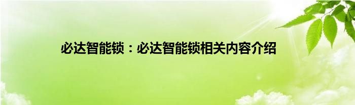 相信通过必达智能锁:必达智能锁相关内容介绍这篇文章能帮到你,在和好朋友分享的时候,也欢迎感兴趣小伙伴们一起来探讨。