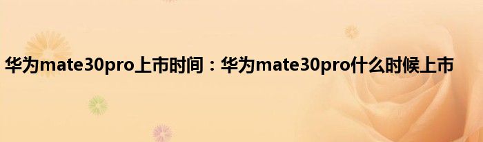 现在大家使用手机的频率越来越频繁,手机也为我们提供了许多的便利,今天小编也来说一下这个华为mate30pro上市时间:华为mate30pro什么时候上市相关的文章,这个操作其实不复杂,接下来就给大家介绍一下华为mate30pro上市时间:华为mate30pro什么时候上市,一起来看看吧: