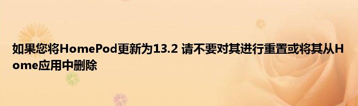 具体来说,Apple在新近更新的支持文档中提供了此建议,该文档详细说明了如何重置HomePod。这篇文章的主要内容是警告,特别是告诉用户不要在13.2 HomePod上重置。