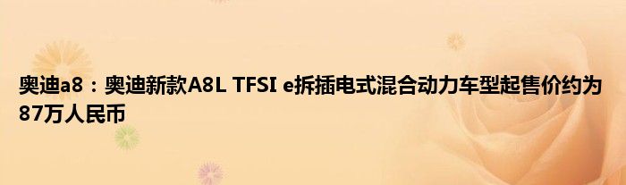 今天来分享一篇个人对奥迪a8:奥迪新款A8L TFSI e拆插电式混合动力车型起售价约为87万人民币相关分析,众所周知,无论是在坊间民众,还是在汽车媒体的议论中,都是不错的,至于产品到底香不香,通过测试还是可以对奥迪a8:奥迪新款A8L TFSI e拆插电式混合动力车型起售价约为87万人民币的产品力分析分析的,一起来看看吧: