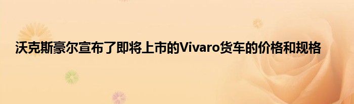 沃克斯豪尔(Vauxhall)宣布了即将上市的Vivaro货车的价格和规格。