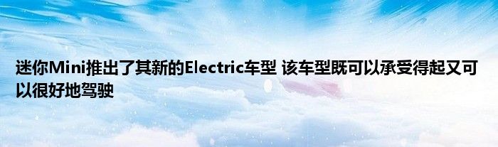 Mini推出了其新的Electric车型,该车型既可以承受得起又可以很好地驾驶。