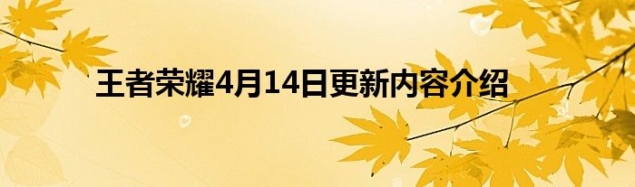 王者荣耀4月14日更新公告