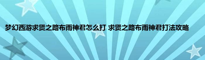梦幻西游网页版求贤之路布雨神君怎么打?