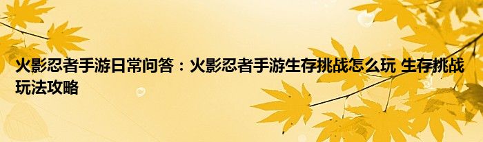 以上就是火影忍者手游日常问答:火影忍者手游生存挑战怎么玩,生存挑战玩法攻略的推荐,相信通过火影忍者手游日常问答:火影忍者手游生存挑战怎么玩,生存挑战玩法攻略这篇文章能帮到你,也欢迎对游戏很感兴趣小伙伴们一起来探讨。