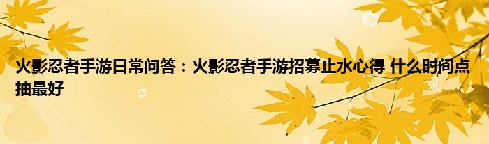 小编今天给各位玩家朋友们带来的是火影忍者手游日常问答:火影忍者手游招募止水心得,什么时间点抽最好,有记得的玩家朋友吗?不记得也没有关系,小编已经帮助大家把火影忍者手游日常问答:火影忍者手游招募止水心得,什么时间点抽最好找了出来,你只需要动动你的小手就可以轻松知道啦,快来瞧一瞧吧。