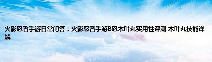 火影忍者手游日常问答:火影忍者手游B忍木叶丸实用性评测 木叶丸技能详解